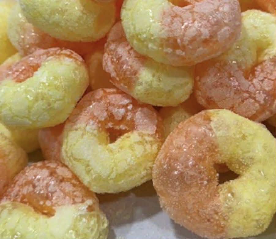 If you’re a fan of the classic gummy Peach Rings, the freeze-dried version offers a completely different experience. The process transforms the dense, stretchy gummy into a massive, puffy ring that is entirely crunchy